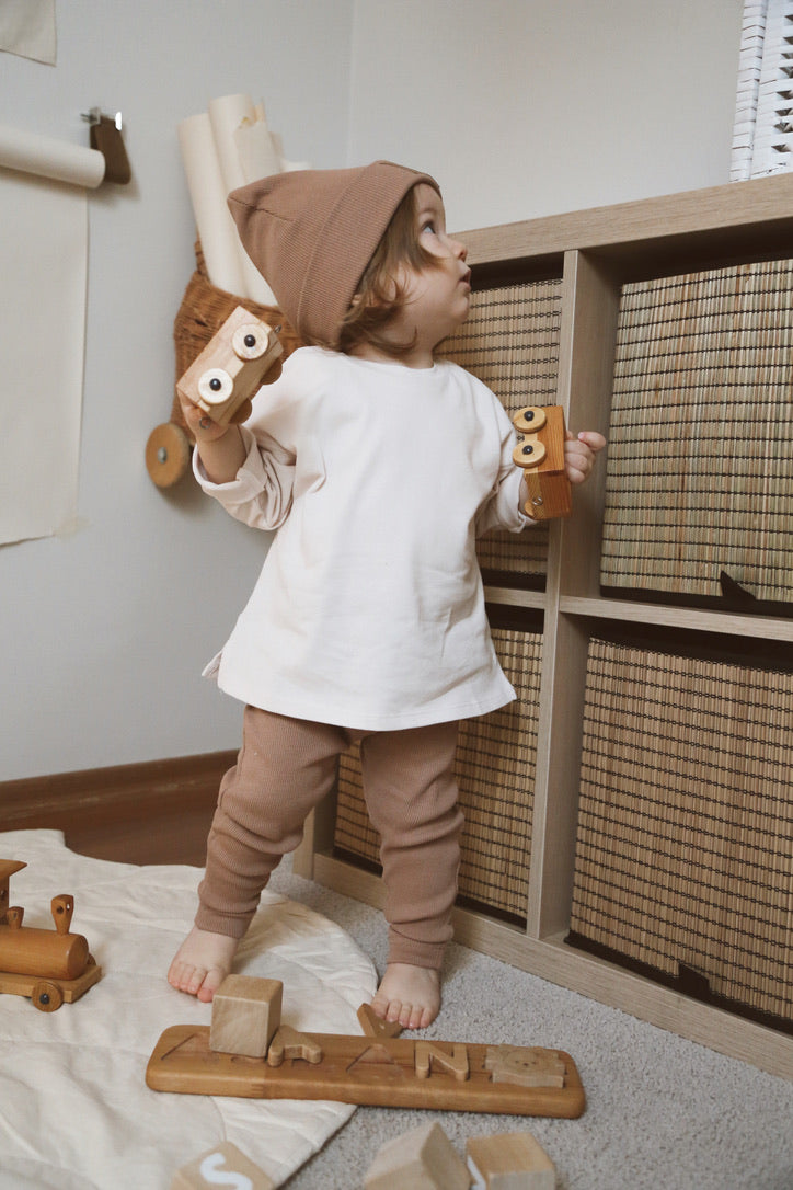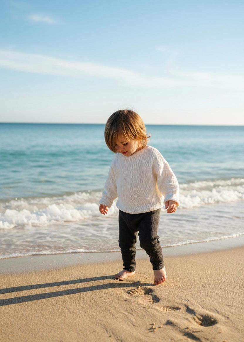 The leggings are made from 95% cotton and 5% lycra fabric, the waistband features a soft, baby-friendly elastic, unisex and perfect to wear in spring or on mild winter days.